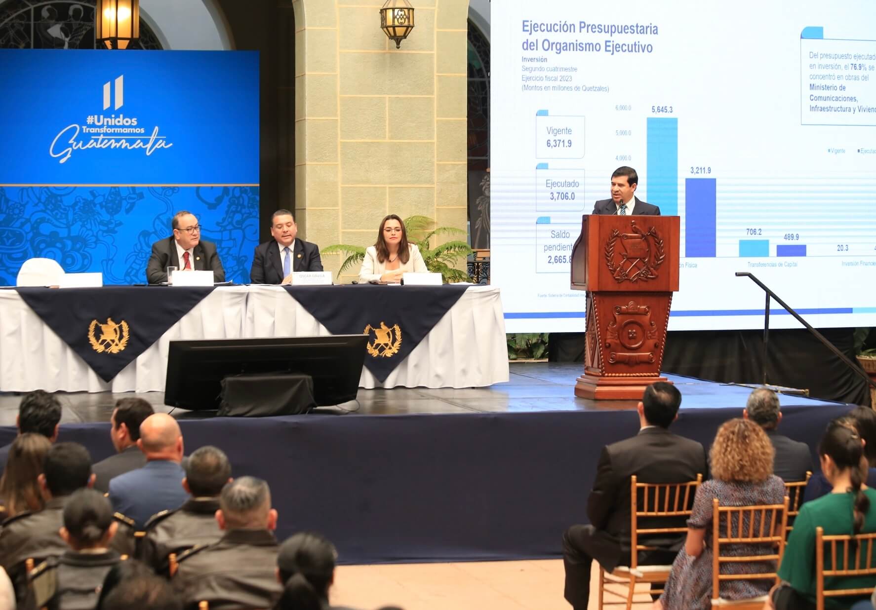 En el marco del segundo informe cuatrimestral de Rendición de Cuentas del Organismo Ejecutivo 2023, el Ministro de Finanzas Públicas, Edwin Martínez Cameros, informó que la ejecución presupuestaria del Gobierno Central en los primeros ocho meses del año alcanza el 63.5%.