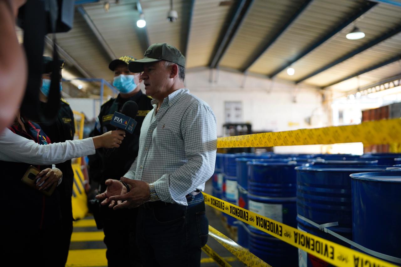 El Ministro de Gobernación dio a conocer este importante golpe al narcotráfico pues en un solo contenedor se halló 120 toneles que en las primeras pruebas de campo dieron como resultado preliminar que contienen droga Fentanilo.