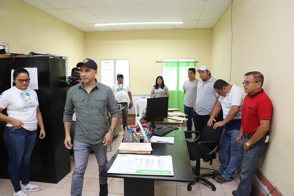 El ministro Rojas Espino también llegó a la Delegación Departamental del MARN, donde conversó con el personal y verificó las instalaciones y los servicios que proveen.