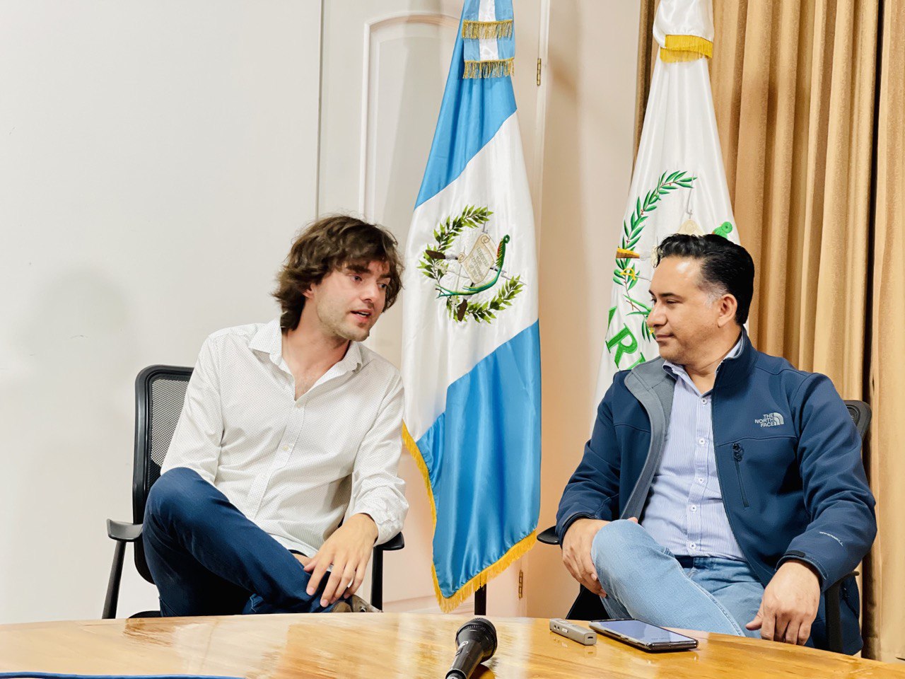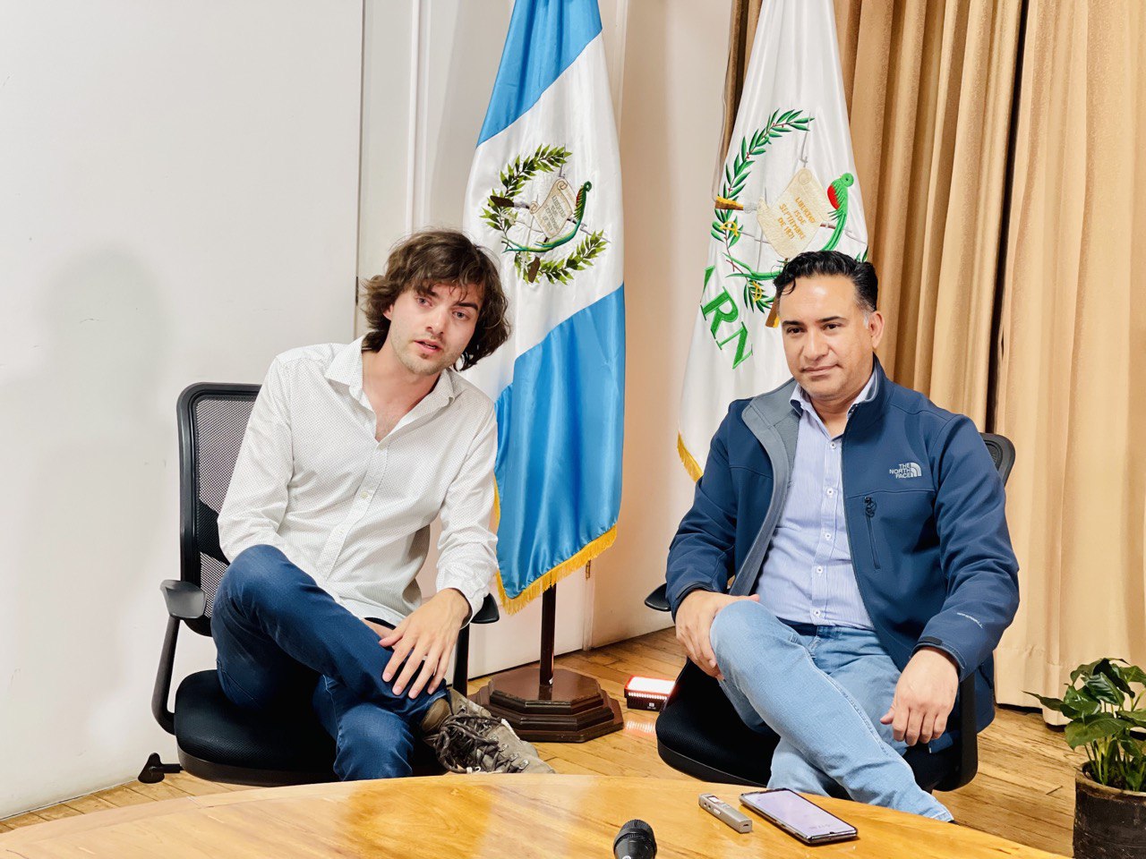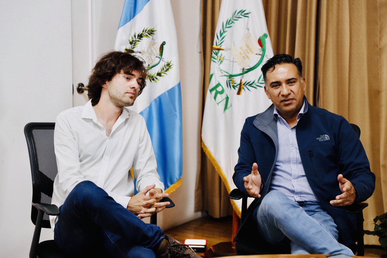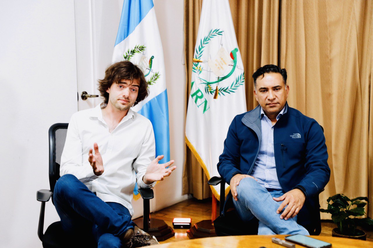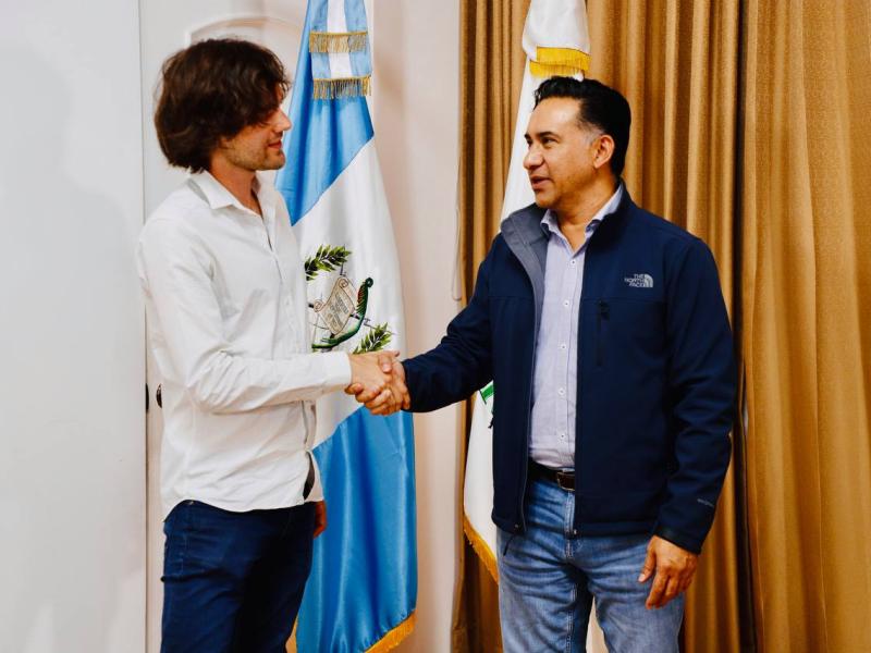 El ministro de Ambiente y Recursos Naturales, Mario Rojas Espino, y el fundador y director ejecutivo de la organización The Ocean Cleanup, Boyan Slat, se reunieron como parte del seguimiento al trabajo en conjunto para el saneamiento del río Motagua.