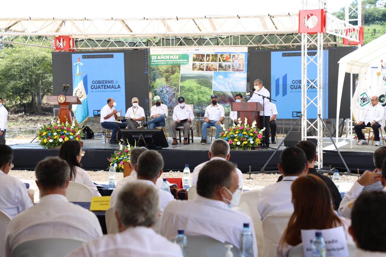 El presidente Giammattei dijo que se debe conservar, por las futuras generaciones, las áreas boscosas establecidas en concesiones forestales. “Petén es una demostración de éxito, somos líderes del proyecto de conservación por medio de las comunidades. Ningún país del mundo tiene lo que nosotros”, añadió el mandatario.