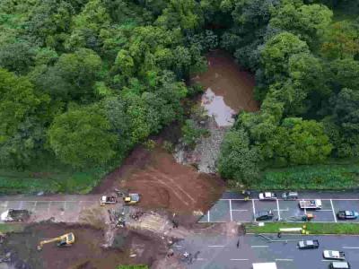 Luego de las inspecciones de ingenieros y equipo instalado en el km 43.9, se pudo determinar que la tubería que pasa a lo ancho de la carretera se tapó en el área Norte por acumulación de sedimento (agua, basura, lodo, ramas de árboles y otros). Al acumularse el agua y saturar el suelo este empezó a deslizarse del lado sur de la carretera. Por esta razón quedó totalmente deshabilitada la autopista Palín-Escuintla.