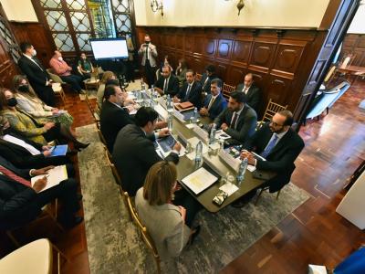 La primera reunión con una delegación extranjera que se lleva a cabo en la “Sala del Inversionista” transcurrió en un ambiente de cordialidad. Durante su participación, el ministro Rosales se refirió a las fortalezas macroeconómicas de Guatemala e hizo énfasis en las recientes calificaciones de riesgo país recibidas de las agencias internacionales.