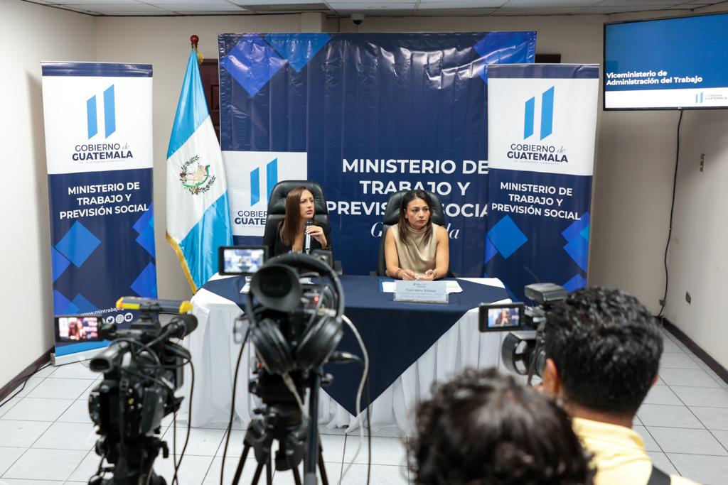 Guatemala 13 de septiembre de 2023. El Ministerio de Trabajo y Previsión Social (Mintrab), a través de sus viceministerios de Administración de Trabajo y Previsión Social y Empleo, dan a conocer este día los avances que se han tenido este año en temas de operativos Bono 14, avances en fijación del Salario Mínimo, campaña sobre Libertad Sindical, ferias de Empleo, Becas Marinos Mercantes, entre otros temas.