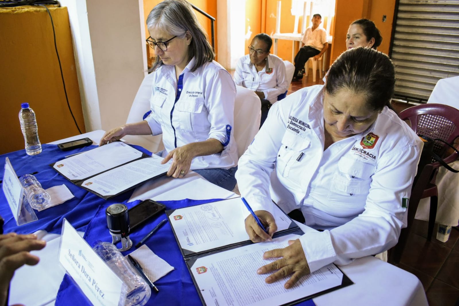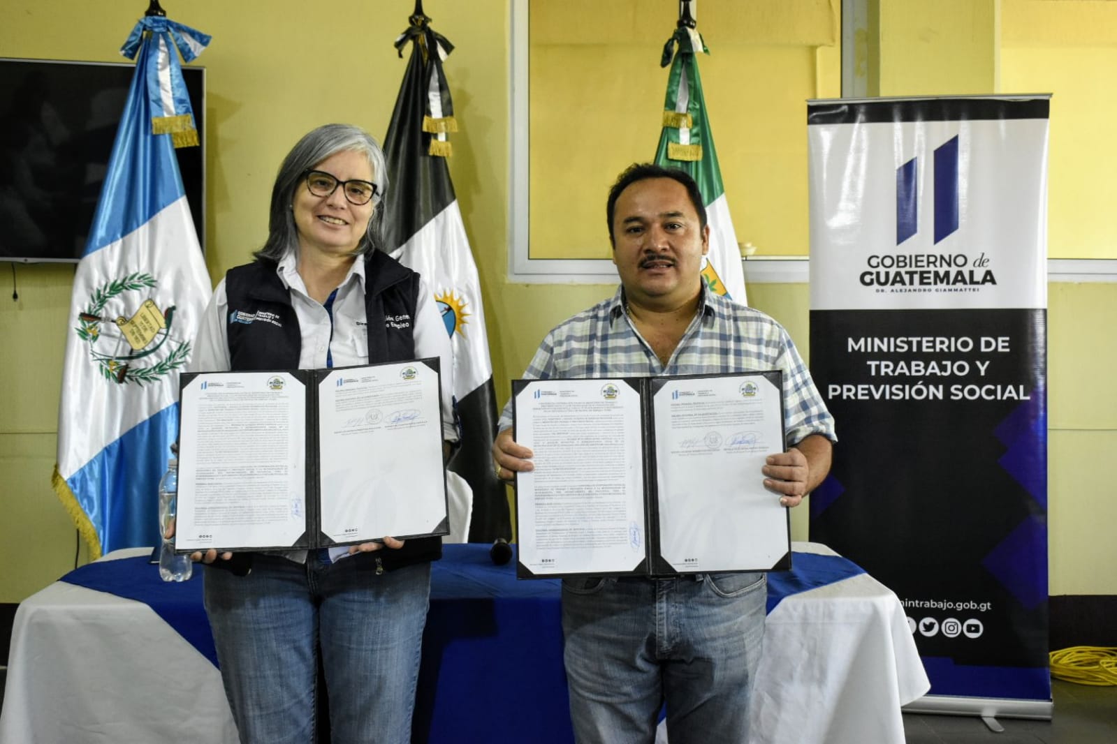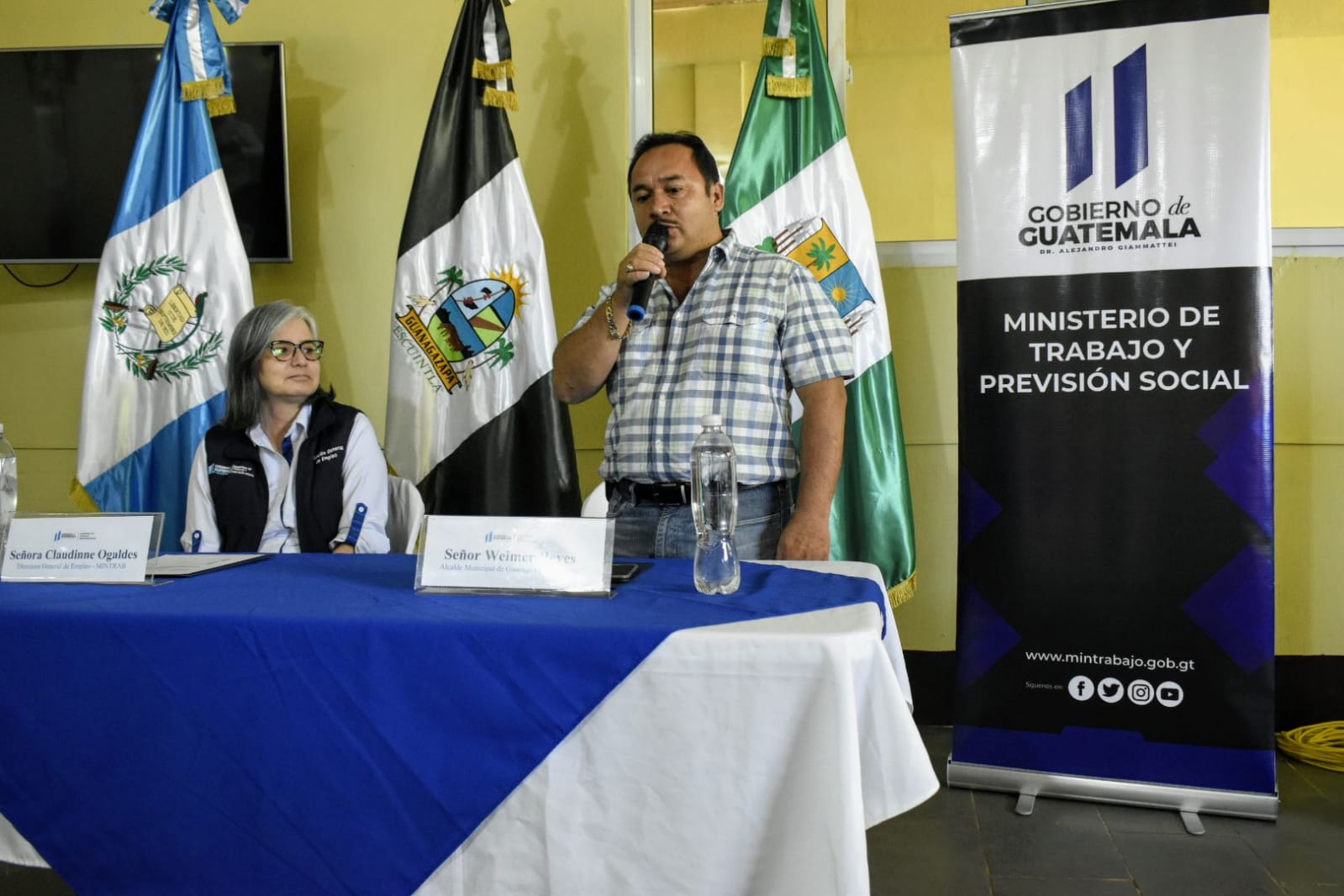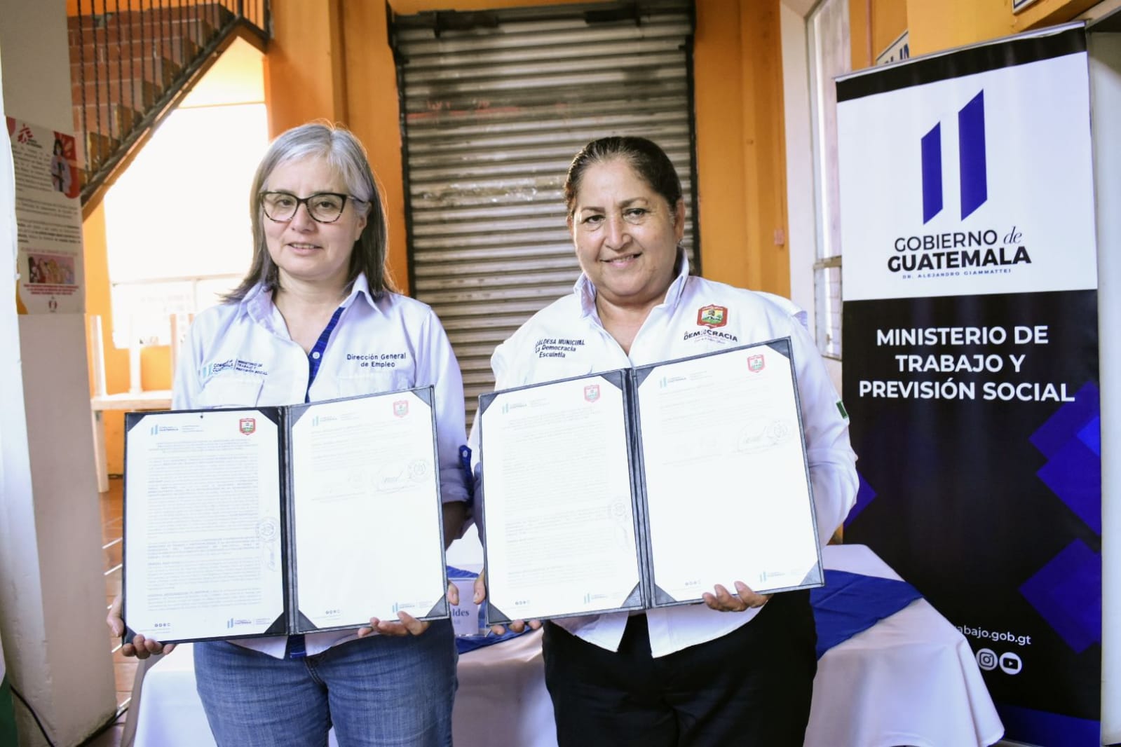 El primer acto se realizó en el salón municipal de Guanagazapa, con la presencia de la Directora General de Empleo, Claudinne Ogaldes y del alcalde del municipio, Weimer Wuilfrédo Reyes Castillo. Mientras en el salón municipal de La Democracia, se llevó a cabo la firma del convenio entre la Directora General de Empleo, Claudinne Ogaldes y la alcaldesa Dora Aldina Pérez Martínez.