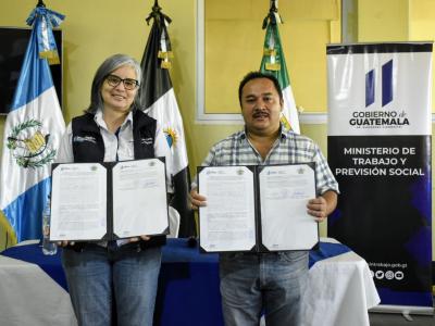 Mintrab firma convenios para nuevas VUME en Guanagazapa y La Democracia, Escuintla