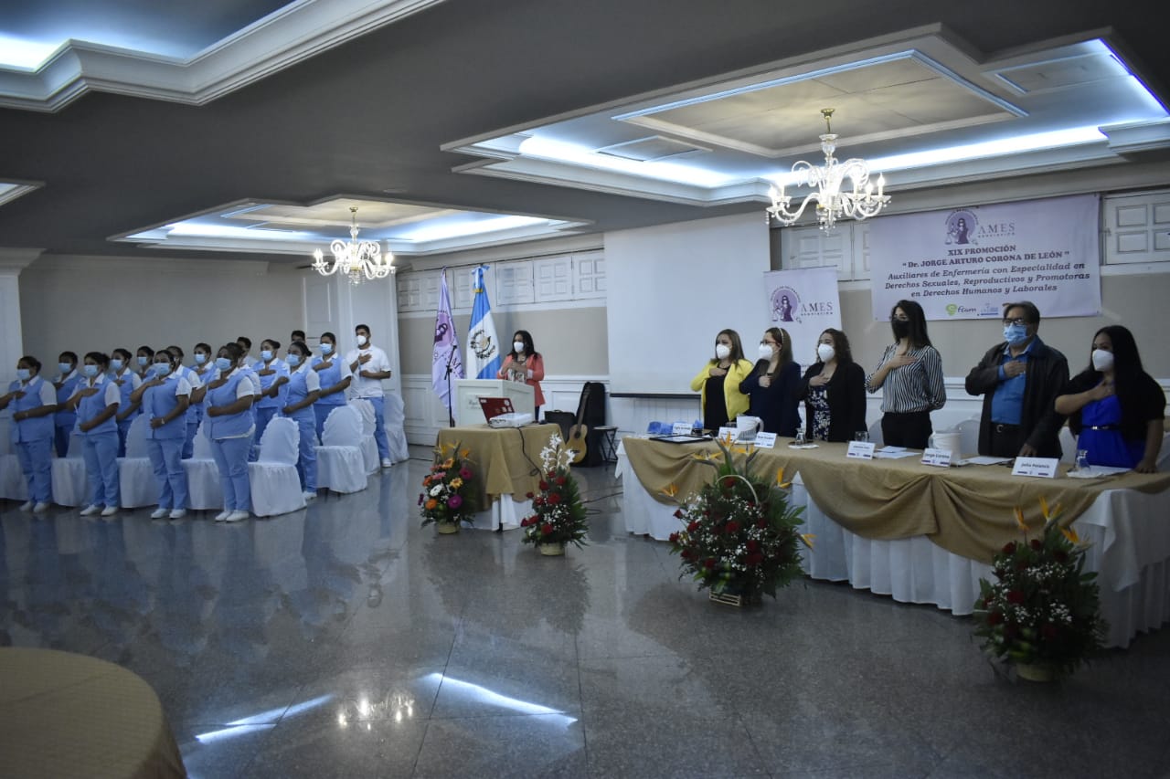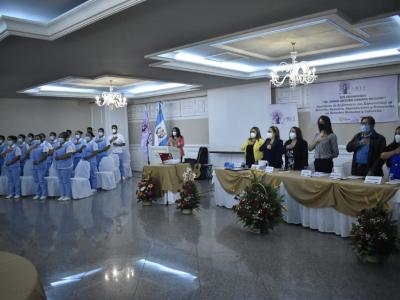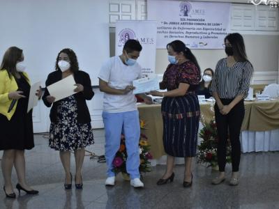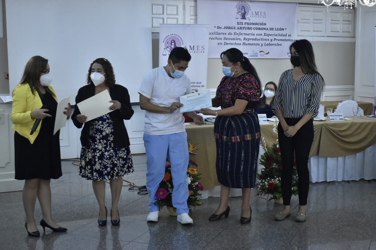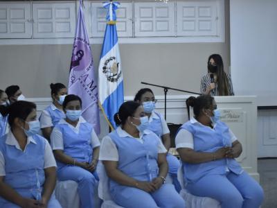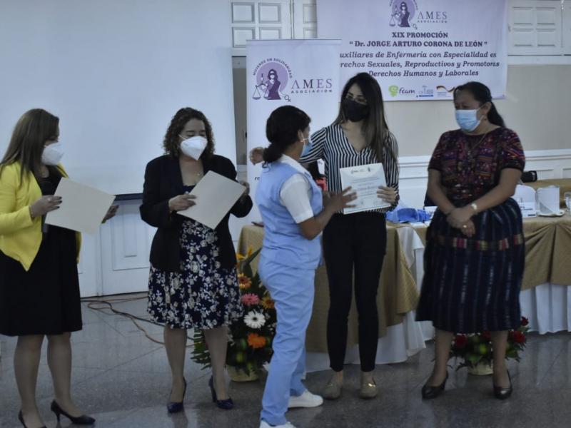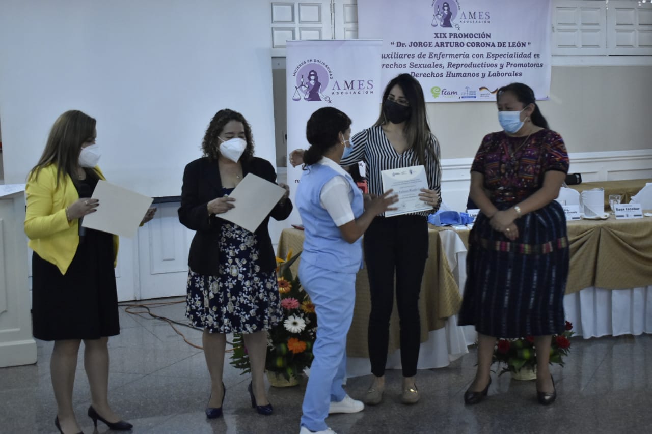 Guatemala, 27 de febrero de 2022. En total, 18 auxiliares de enfermería fueron certificados como la XIX promoción de especialistas en Derechos Sexuales, Reproductivos y Promotoras en Derechos Humanos y Laborales, por la Asociación Mujeres en Solidaridad (AMES), en coordinación con la Sección de Mujer Trabajadora, del Ministerio de Trabajo y Previsión Social.