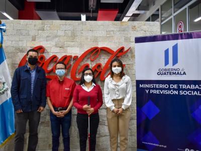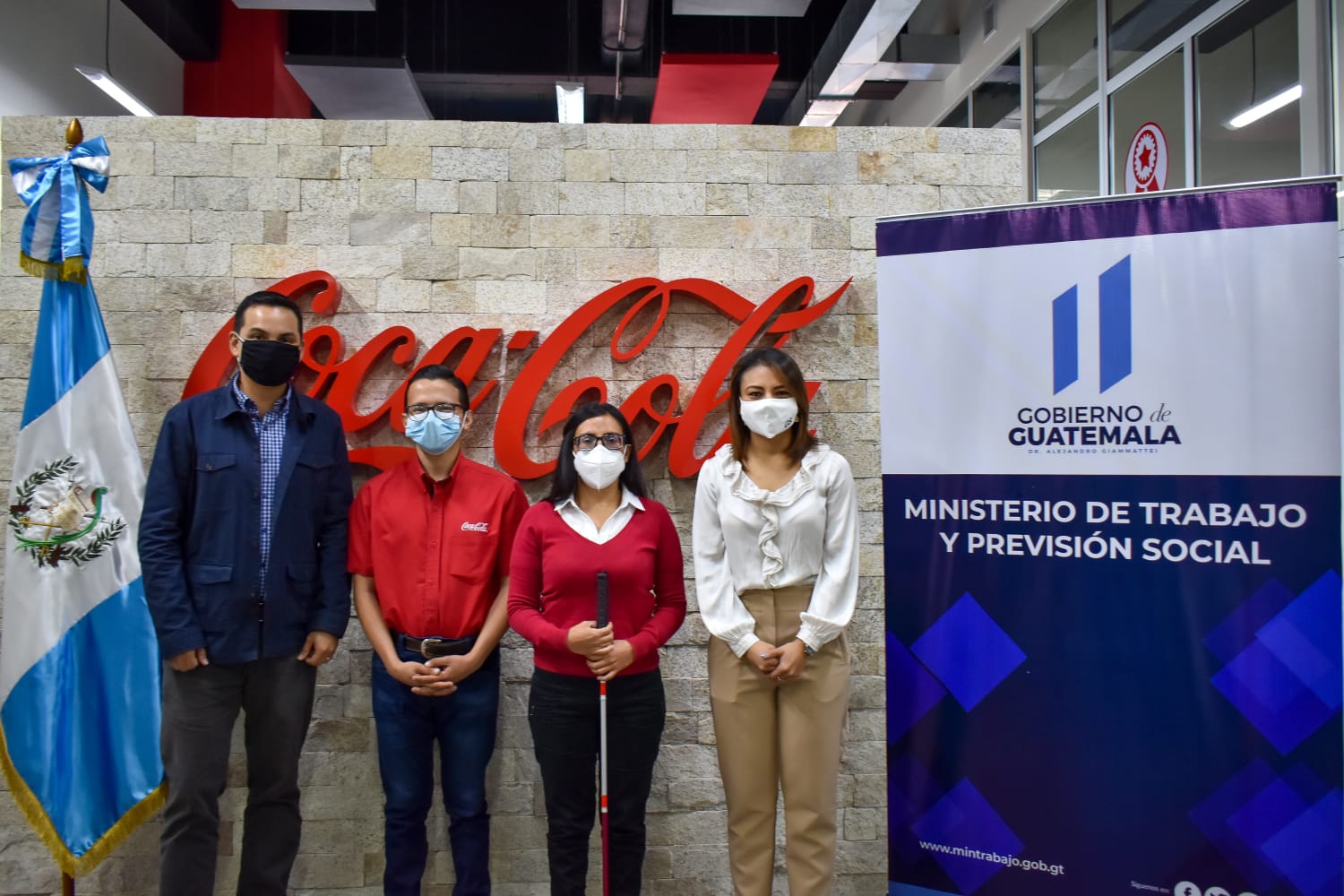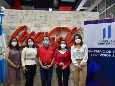 Guatemala, 14 de septiembre de 2021. El Ministerio de Trabajo y Previsión Social (Mintrab) junto a las embotelladoras del Sistema Coca-Cola (Coca-Cola FEMSA, Coca-Cola ABASA y Coca-Cola Los Volcanes), dieron inicio hoy a un período de pasantías laborales para 5 personas con discapacidad, quienes se desempeñarán durante seis meses en las áreas de recursos humanos, almacén y sistemas.