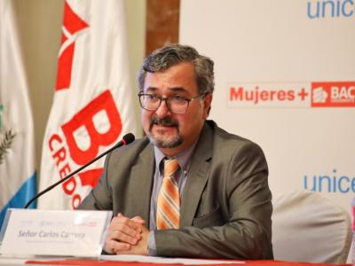 El acto protocolario contó con la participación de la Viceministra de Previsión Social y Empleo, Geovanna Salazar; el representante de UNICEF en Guatemala, Carlos Carrera; y Eric Campos, Gerente de País de BAC Credomatic Guatemala.