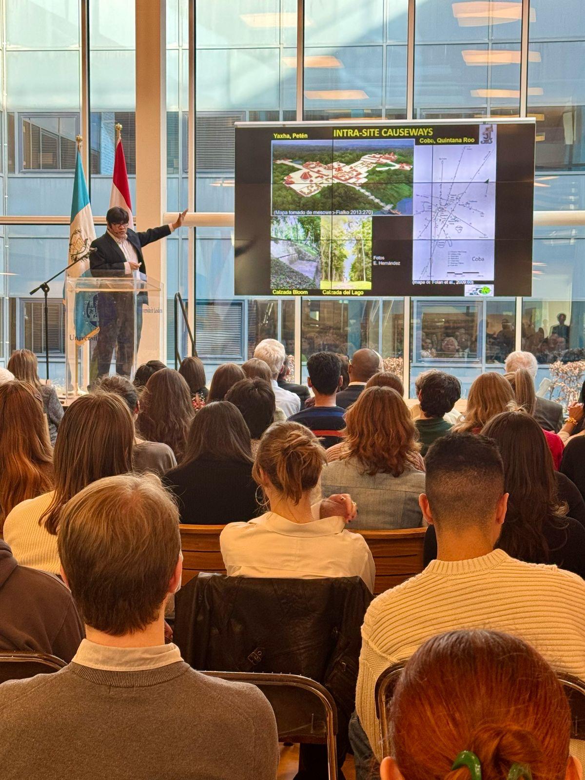 La actividad se inició con el discurso de bienvenida del Dr. Alexander Geurds, Vicedecano de la Facultad de Arqueología de la Universidad de Leiden, seguido por palabras introductorias de la Embajadora guatemalteca Ana Cristina Rodríguez Pineda. El programa contó con las exposiciones de arqueólogos sobre el Proyecto Cuenca Mirador, quienes presentaron la red de calzadas con características hídricas en la Cuenca durante el período preclásico tardío.
