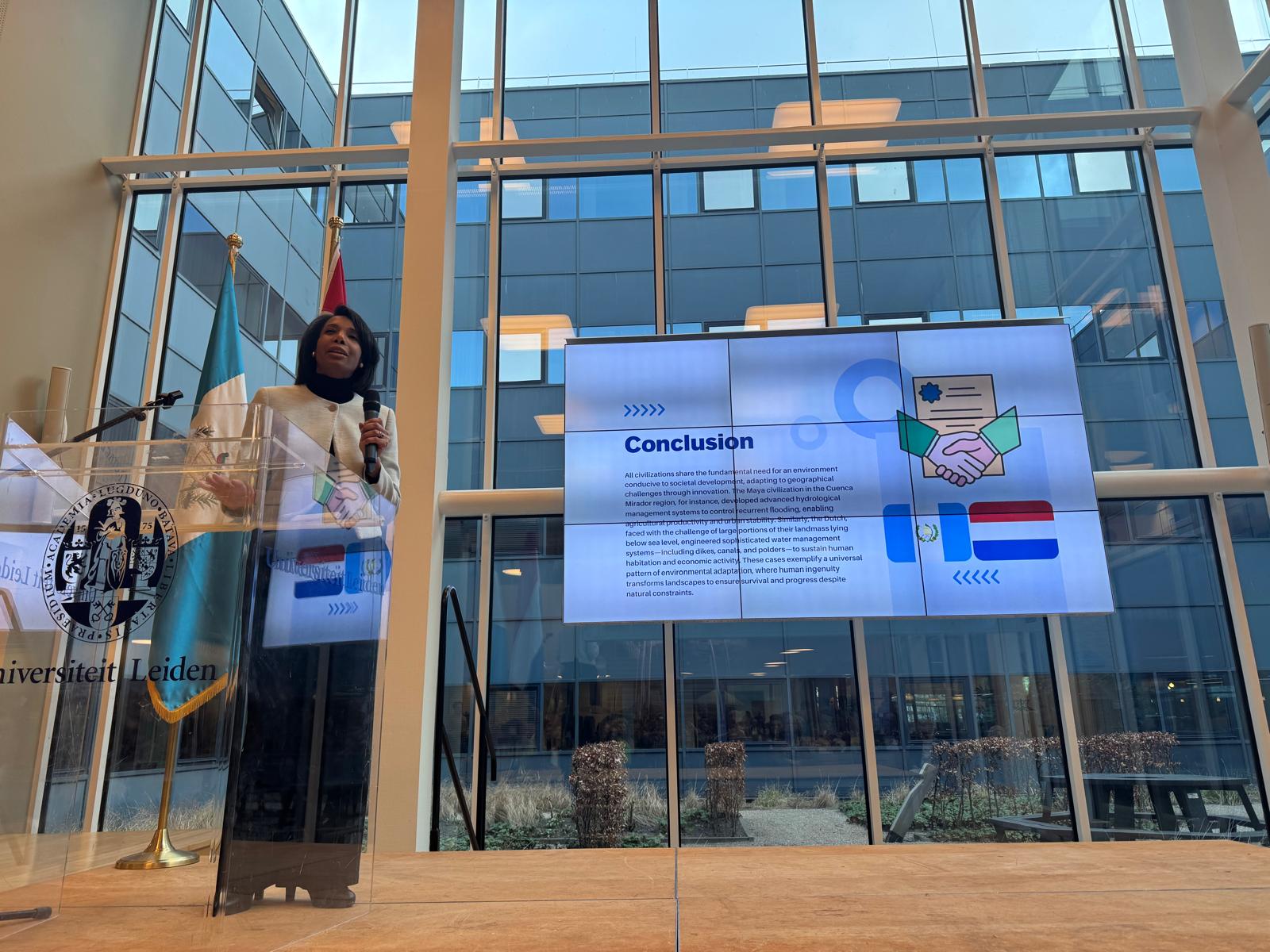 La visita tuvo como eje central la conferencia "Water Legacy: Mayan World Meets the Netherlands", sobre la gestión del agua en la civilización maya y su relevancia para las prácticas neerlandesas en la actualidad. El evento fue organizado en colaboración con la Facultad de Arqueología de la Universidad de Leiden y la Asociación Hispánica de La Haya.