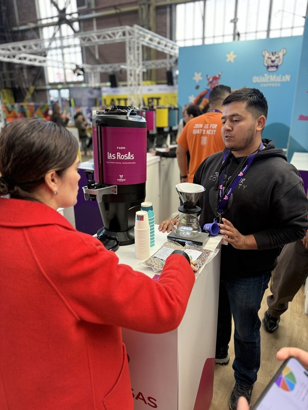 En la primera jornada, las fincas Las Rosas y La Cabaña protagonizaron una sesión en el brew bar (barra de preparación) del stand guatemalteco, con el apoyo de Sococó Coffee, empresa especializada en café de especialidad con vínculos con productores latinoamericanos.
