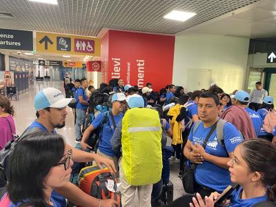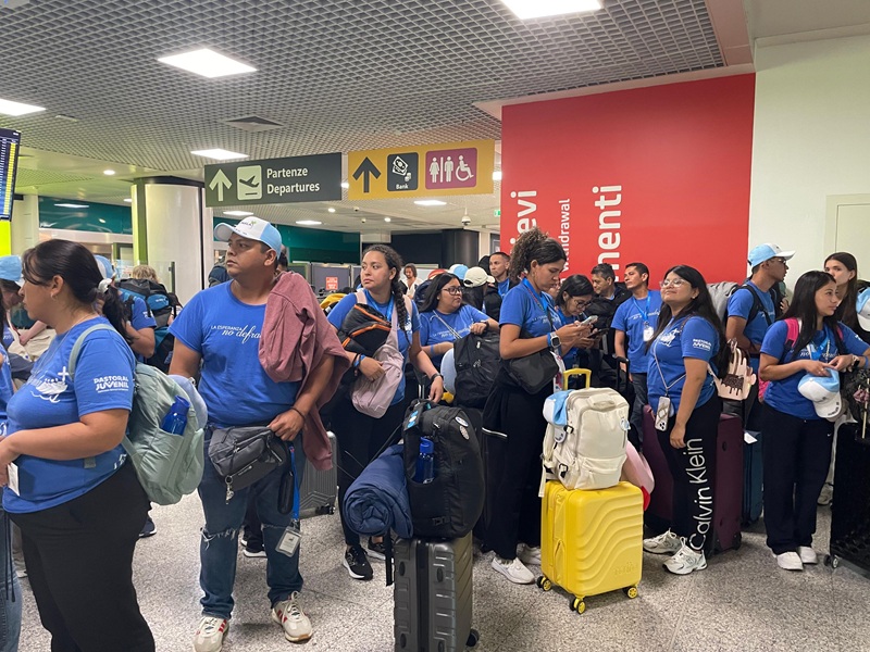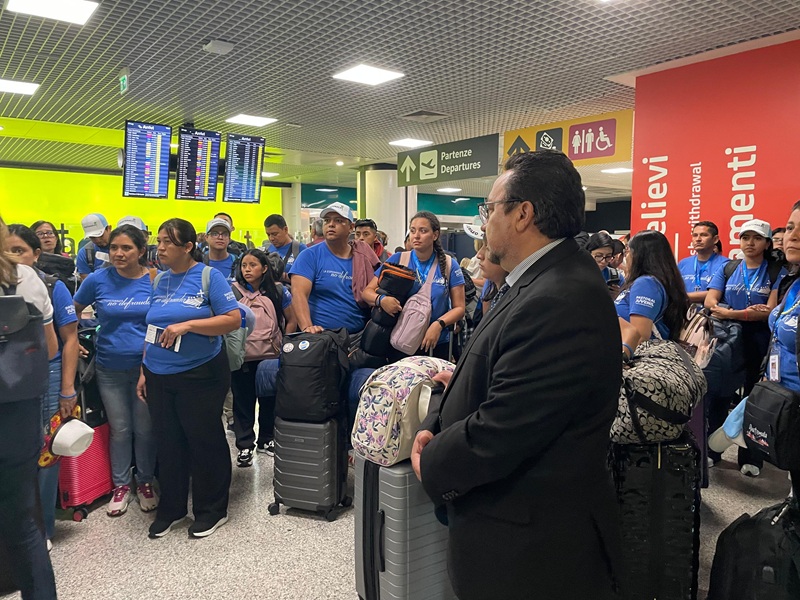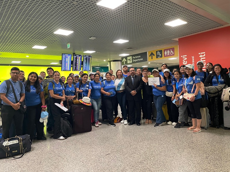 Ciudad del Vaticano, 23 de julio de 2025. La Embajada de Guatemala ante la Santa Sede recibió en el Aeropuerto Internacional Leonardo da Vinci al segundo grupo de guatemaltecos que participarán en el Jubileo de los Jóvenes, que se llevará a cabo del 28 de julio al 3 de agosto de 2025 en Roma y y en la Ciudad del Vaticano.