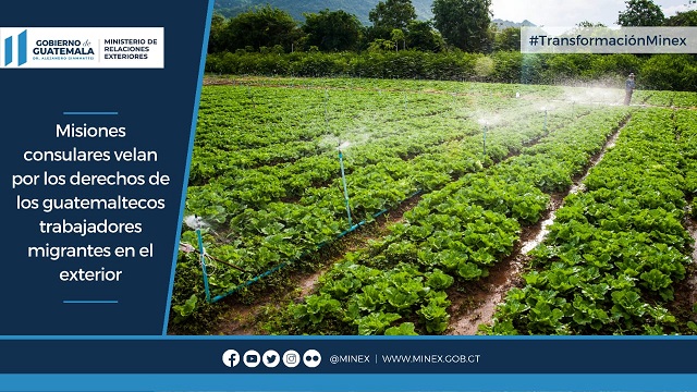 Guatemala, 27 de agosto de 2021. El Ministerio de Relaciones Exteriores (Minex), por medio de sus consulados y secciones consulares de las Embajadas vela permanentemente porque se protejan y respeten los derechos de los guatemaltecos que laboran de manera temporal en el extranjero.