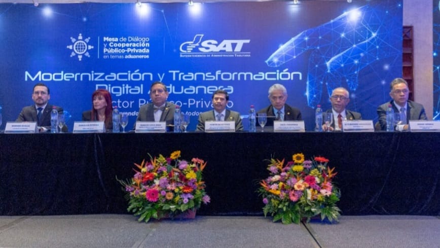 El ministro de Finanzas Públicas y presidente del Directorio de la Superintendencia de Administración Tributaria (SAT), Edwin Martínez Cameros participó en la presentación de los avances y próximos pasos de la modernización y transformación digital aduanera, que refleja los esfuerzos realizados por el servicio aduanero en el marco de acciones conjuntas público-privadas en beneficio de la facilitación del comercio.