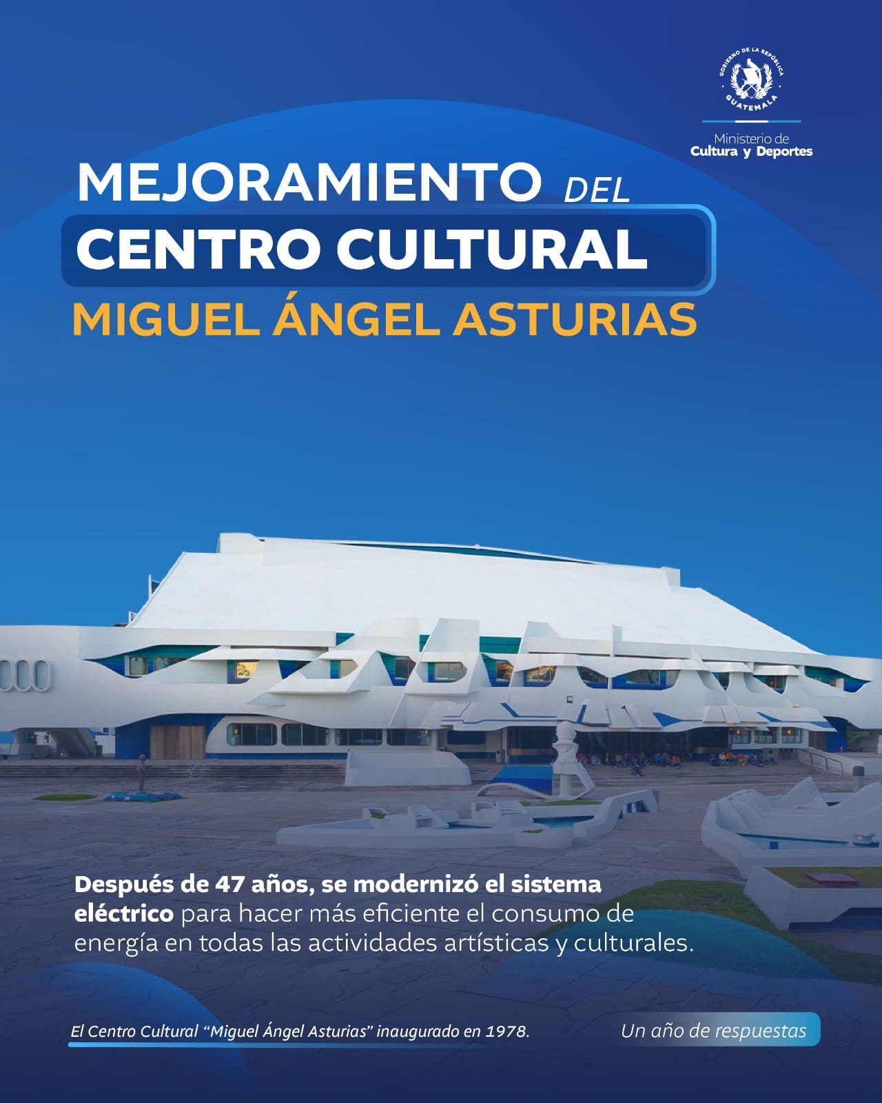 Modernizamos el Centro Cultural Miguel Ángel Asturias, uno de los espacios culturales más emblemáticos del país, escenario de las artes y la cultura nacional.