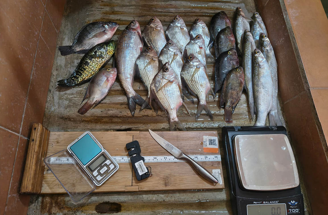 Las especies reportadas en esta ocasión fueron palometa, mojarra y calvitas, liseta, machaca, guapote y tilapia, representativas de la diversidad de especies local, La evaluación fue realizada por los técnicos de la Dirección de Normatividad de la Pesca y Acuicultura (DIPESCA), del Ministerio de Agricultura, Ganadería y Alimentación (MAGA).