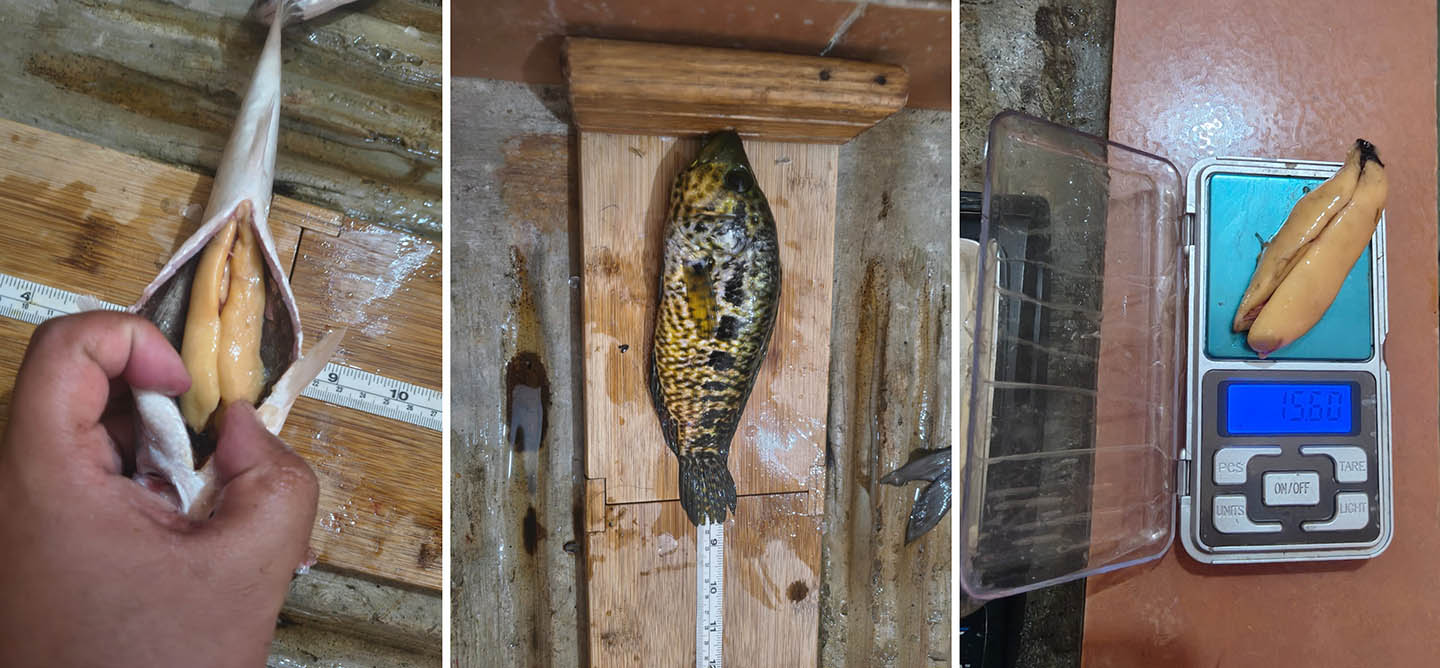El tercer monitoreo biológico de especies capturadas en el embarcadero de Río Dulce, Puerto Barrios, Izabal, tuvo lugar esta semana y se practicó una evaluación biológica que incluyó identificación de especie, determinación de sexo, medición de longitud total, peso y estado de desarrollo gonadal (formación de los miembros sexuales).