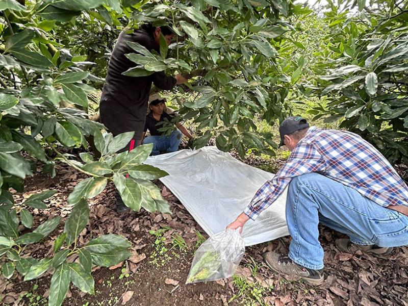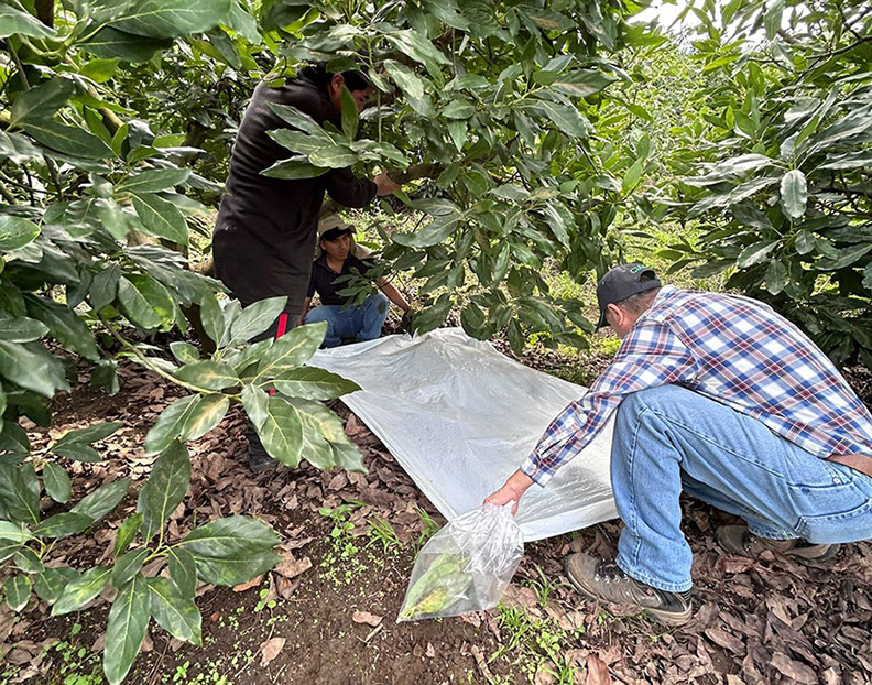 En el departamento de Chimaltenango se realizó el monitoreo de dos fincas productoras de aguacate variedad Hass, ubicadas en los municipios de Chimaltenango y San Andrés Itzapa, tomando como referencia una hectárea por cada quince de hectáreas de producción.