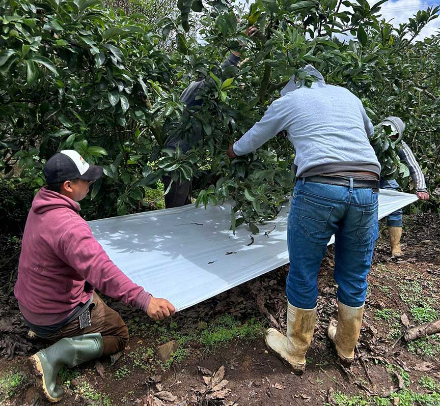 Además, en cada árbol se colocó un nylon de color blanco de debajo de las ramas del árbol, luego se procedió a sacudir la rama entre diez y quince segundos, con el propósito de que todos los adultos que estén encima de los frutos, inflorescencias, hojas y ramas, caigan y se colecten.