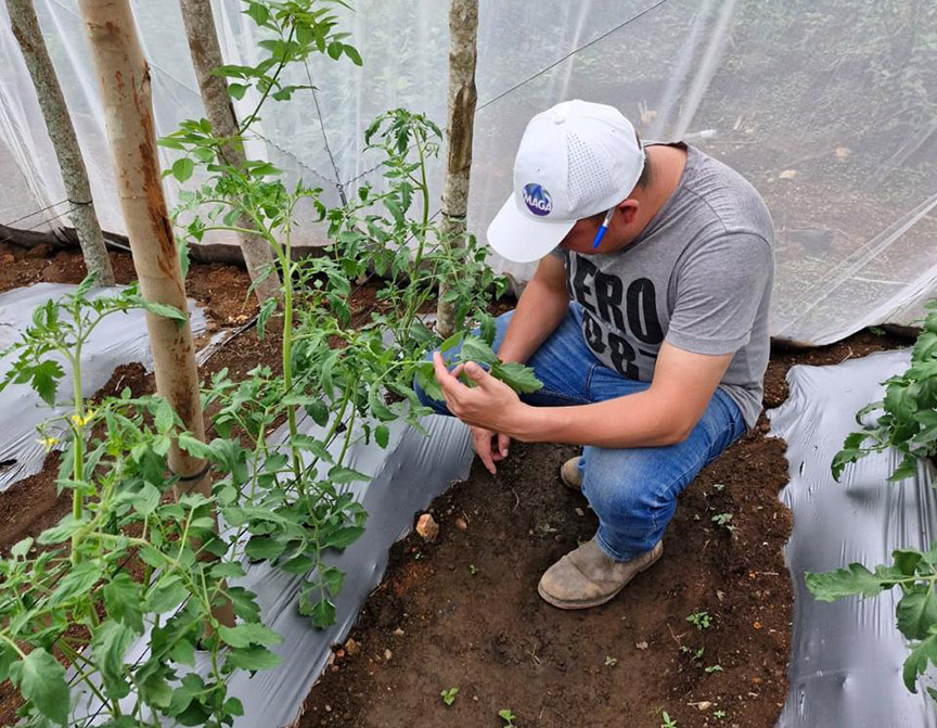 Por medio de los extensionistas de agricultura familiar, se realizan los monitoreos y asistencias técnicas del desarrollo morfológico y fenológico del cultivo de tomate en los macro túneles. El monitoreo verifica los procesos de las diferentes etapas del cultivo, con el objetivo de visualizar si el crecimiento de las plantas está acorde con lo previsto en los planes de fertilización y fitosanitario.