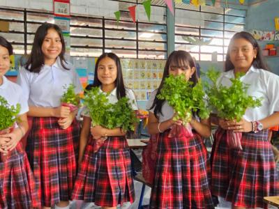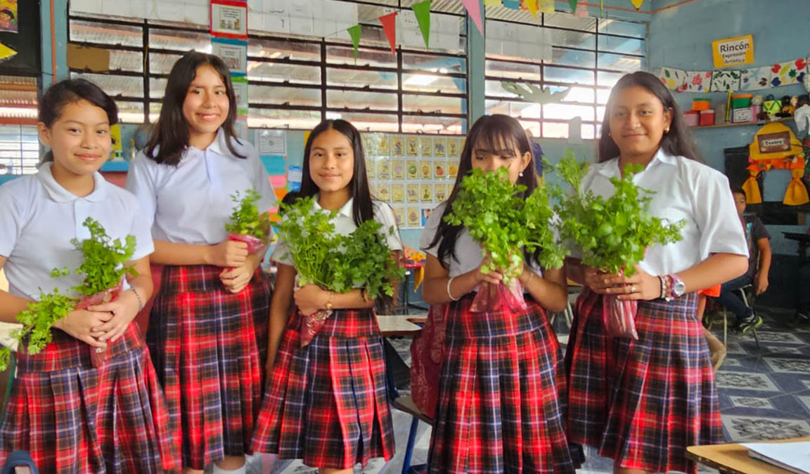La comunidad educativa se ve beneficiada al cultivar sus propios alimentos y fomentar hábitos saludables, que fortalecen la seguridad alimentaria y nutricional. Se les dio seguimiento para que hicieran limpieza de tablones, control de plagas y malezas, además de efectuar el riego cuando era necesario.