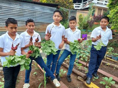Los frutos de los huertos escolares con fines pedagógicos de diferentes centros educativos del departamento de San Marcos, fueron cosechados luego del monitoreo efectuado por personal del Departamento de Agricultura Urbana (DUA) del Viceministerio de Seguridad Alimentaria y Nutricional (VISAN), del Ministerio de Agricultura, Ganadería y Alimentación (MAGA).