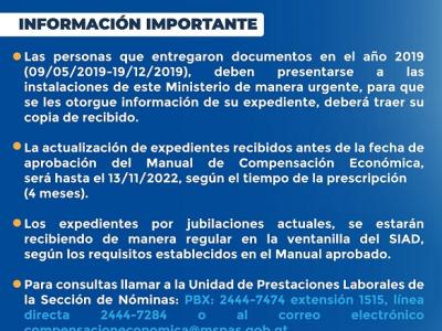 Para consultas llama a la unidad de Prestaciones Laborales: PBX. 2444-7474 ext. 1515 o línea directa 2444-7284 O por correo electrónico a compensacioneconomica@mspas.gob.gt
