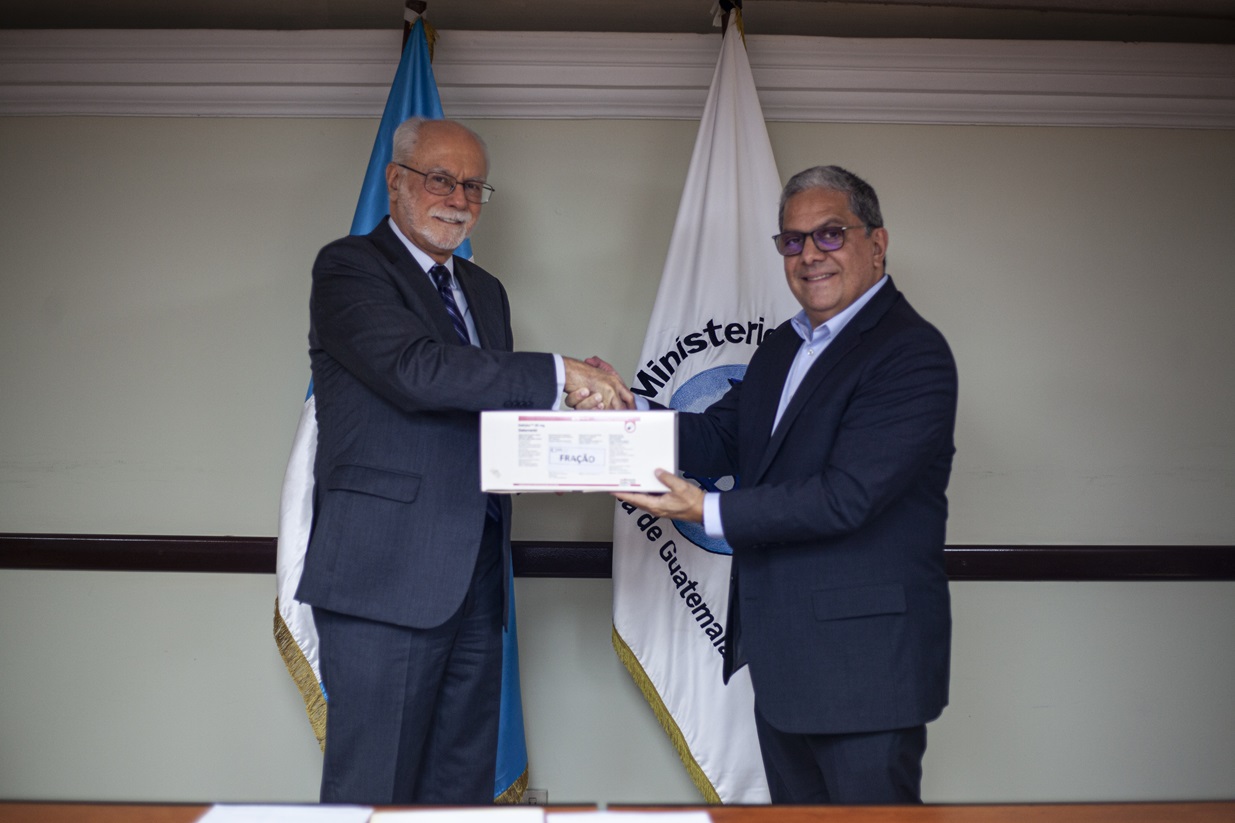 En un acto celebrado en las instalaciones del ministerio de Salud Pública y Asistencia Social -MSPAS-, fue entregado un lote de 4 mil 992 comprimidos del medicamento “delamanid”, para el tratamiento contra la tuberculosis, con un valor de Q135 mil 625.72, por parte del embajador de Brasil en Guatemala, Henrique da Silveira Sardinha Pinto.