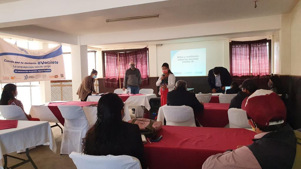 El Ministerio de Salud Pública y Asistencia Social -MSPAS-, a través del Sistema Integral de Atención en Salud -SIAS-, con el apoyo del Proyecto Breakthrough Action, Hep Plus y Procurement and Supply Mangement Project -PSM-, realiza una reunión con comunicadores del área Ixil, en Quiché, con el objetivo de conocer sus experiencias, brechas y aprendizajes en el marco de vacunación Covid-19, para luego implementar acciones que apoyen las coberturas de inmunización contra el nuevo virus.