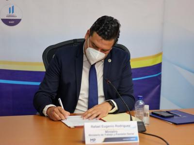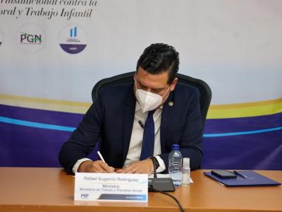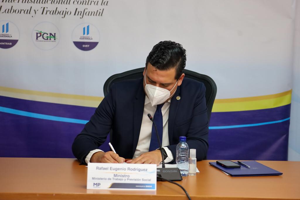 Al respecto, el Ministro de Trabajo y Previsión Social, Rafael Rodríguez señaló que “la eliminación del trabajo infantil en sus peores formas, es una prioridad para el Gobierno del Presidente Alejandro Giammattei, y reconocemos que para lograrlo es sumamente importante abordarlo de una manera integral, por lo que la adhesión de MSPAS y MIDES es clave”. Además, reitero el compromiso del Ministerio de Trabajo para ejecutar acciones efectivas de forma coordinada y transparente sobre todo en los lugares en situación con altos niveles de riesgo identificados a través del Modelo de Identificación del Riesgos de Trabajo Infantil (MIRTI).
