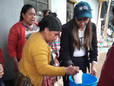 En la aldea Buena Vista, San Juan Ostuncalco, diez familias recibieron asistencia técnica para la elaboración de insumos de limpieza para el hogar. Esta acción tiene como propósito de fomentar el ahorro en la economía familiar, permitiendo que las beneficiarias produzcan sus propios productos de higiene de manera económica y efectiva.