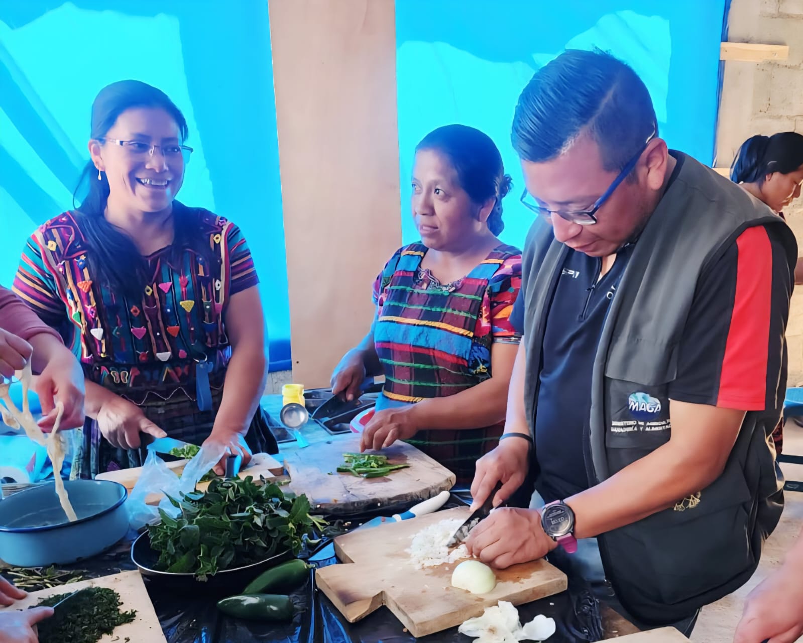 La actividad reunió a un nutricionista del componente de Agricultura Familiar Sensible a la Nutrición y educadoras de Hogar Rural de la Agencia Municipal de Extensión Rural del MAGA de Chimaltenango, quienes brindaron acompañamiento técnico durante la jornada.