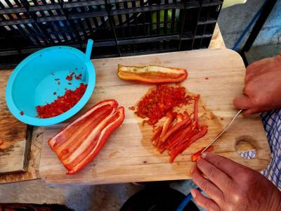 El nutricionista explicó el valor nutricional de los ingredientes que utilizaron para elaborar longanizas típicas y el aporte de cada uno en proteínas, vitaminas y minerales. Se utilizó carne, cilantro, cebolla, tomate, chile jalapeño, hierbabuena y chile pimiento. Muchos de estos productos pueden cultivarse en huertos familiares.
