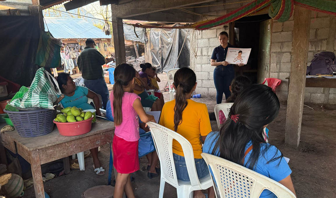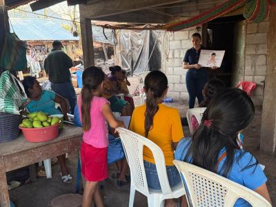 Yakelin Sola, nutricionista de Agricultura Familiar Sensible a la Nutrición, expuso a las familias la importancia y relevancia de tener un huerto en casa, así como incluir vegetales en la alimentación diaria. También explicó de forma sencilla qué es un plato saludable y los distintos tipos de desnutrición aguda, con el fin de sensibilizar cómo pequeños cambios pueden generar grandes beneficios para la salud.