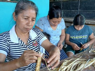 Se desarrolló el taller de Mujeres Activas y Mujeres Virtuosas sobre la elaboración de canastas artesanales a base de tusa en el municipio de Las Cruces, Petén, dirigido a un grupo de mujeres del Centro de Aprendizaje para el Desarrollo Rural (CADER).
