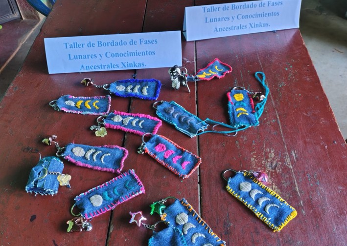 Durante la actividad, las participantes transformaron el bordado tradicional en llaveros representativos de las fases lunares, estableciendo un vínculo directo entre la observación astronómica y la técnica artesanal.