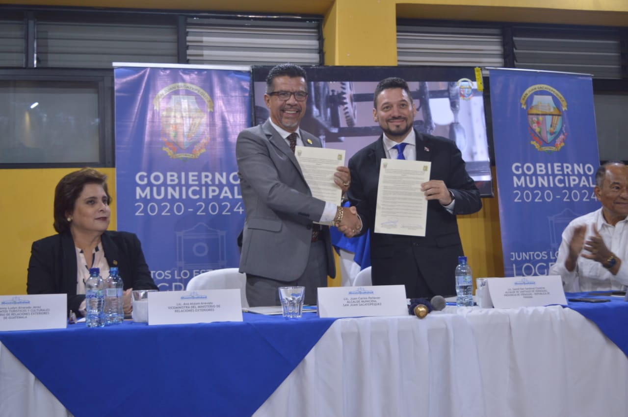La ceremonia se llevó a cabo en el Palacio Municipal de San Juan Sacatepéquez, con la presencia de la viceministra de Relaciones Exteriores, Ava Atzum Arévalo de Moscoso; el alcalde de San Juan Sacatepéquez, Juan Carlos Pellecer; el alcalde de Santiago de Veraguas, Samid Dan Sandoval, y funcionarios de la Embajada de Panamá acreditada en Guatemala.