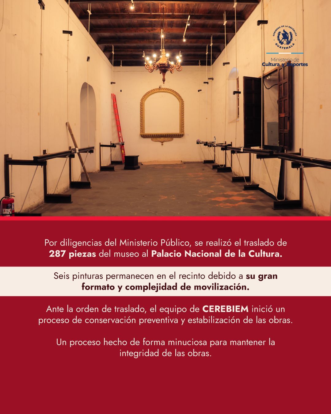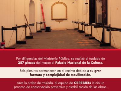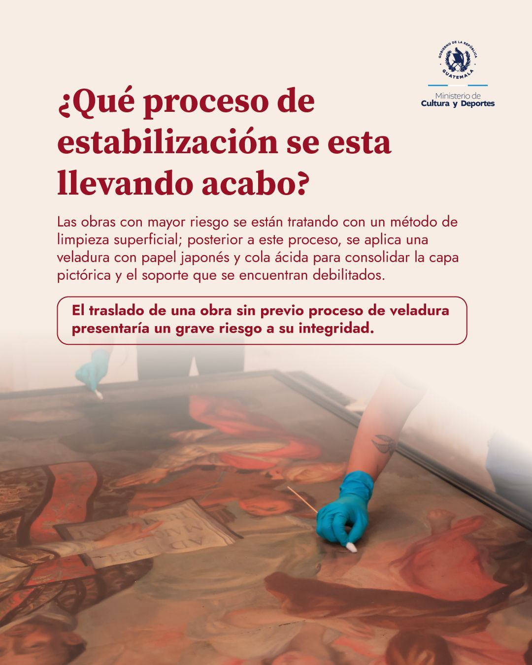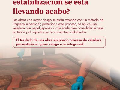 Nuestro equipo trabaja de forma minuciosa en la conservación preventiva de las obras que aún permanecen en el recinto, garantizando su protección y estabilidad.