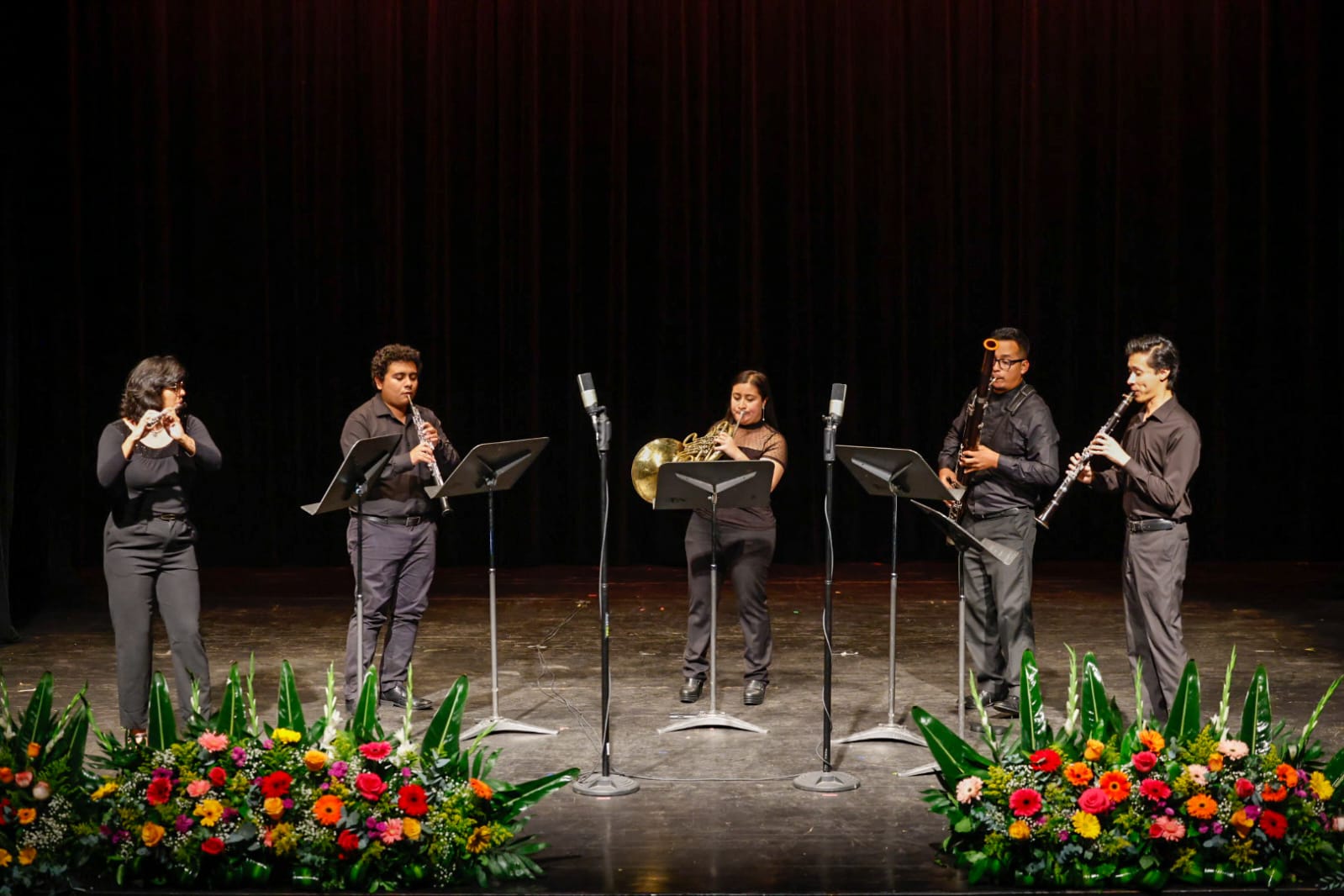 El quinteto está integrado por Joaquín Paniagua, quien interpreta el oboe; Marlon Chacón, encargado del fagot; Ben Levi Girón, artista de clarinete; Rubí Escobar con la flauta y Ángela Jayes con el corno francés.