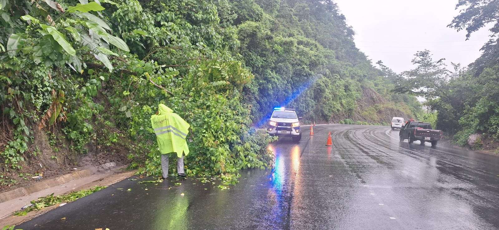 Este jueves por la tarde, personal de Provial brindó seguridad vial y ejecutó labores de limpieza tras la caída de un árbol en el kilómetro 75.6 de la ruta a El Salvador [CA-1 Oriente], en jurisdicción de San José Acatempa, Jutiapa.