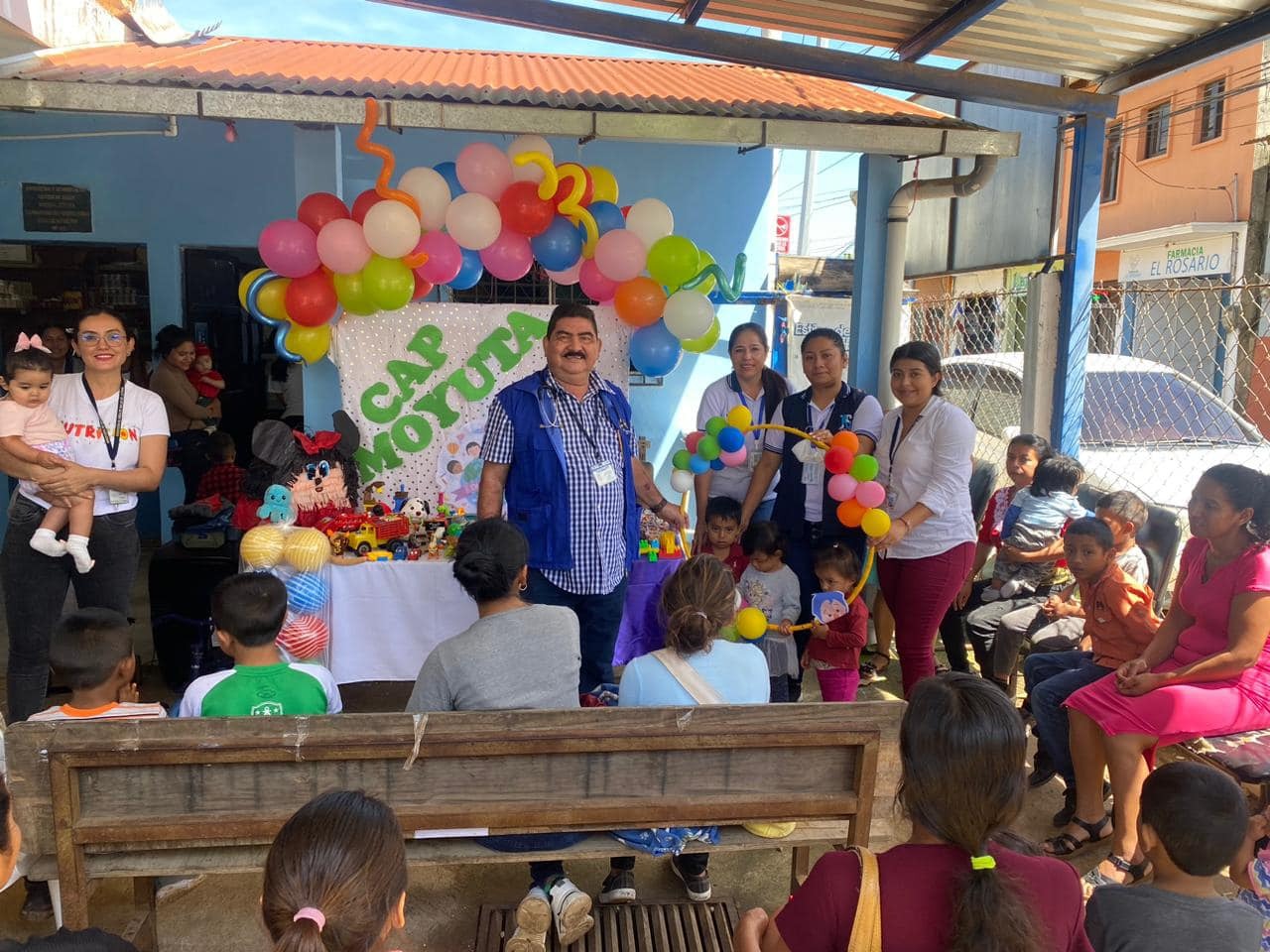 Los coloridos globos adornaron este servicio de Salud creando un espacio de mucha alegría para la niñez presente que recibió juguetes, participó en diversas actividades recreativas que les permitió pasar un momento agradable.