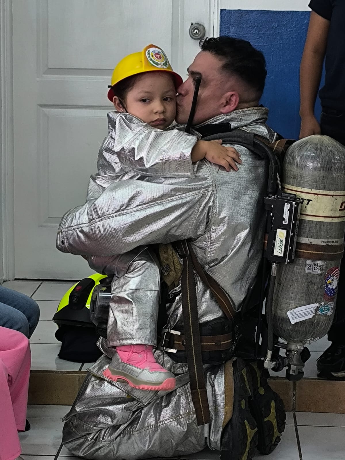 En el marco de la actividad “Un día con los servidores públicos”, los niños y niñas del Jardín Infantil Nuestra Señora de Fátima, del Ministerio de Comunicaciones, Infraestructura y Vivienda, recibieron una visita muy especial por parte del personal del Servicio de Salvamento y Extinción de Incendios (SSEI) del Aeropuerto Internacional La Aurora.