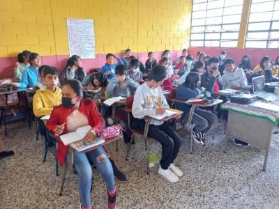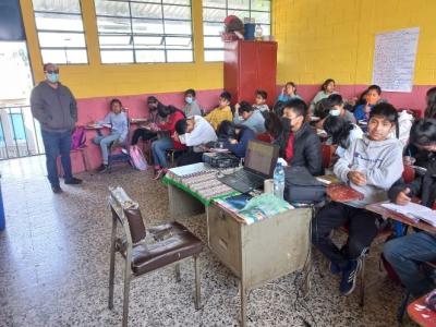 Estudiantes de la Escuela Oficial Rural Mixta del Cantón Chijtinimit, Chichicastenango, fueron capacitados sobre agua, suelo, bosque y cambio climático por educadores de la delegación del MARN.