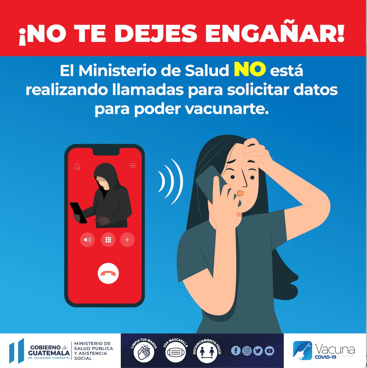 El MSPAS hace un llamado a la cautela ante estos hechos, que pueden perjudicar la privacidad y seguridad de los guatemaltecos, a través de estas acciones engañosas.