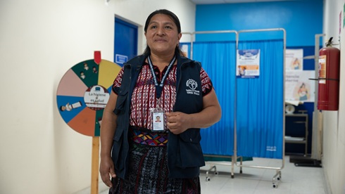 Norma García es salubrista del distrito de San Lucas Tolimán, Sololá, y lleva más de veinte años dedicada al servicio comunitario. Su experiencia la ha convertido en una figura esencial para que la salud se viva como un derecho cercano y compartido.