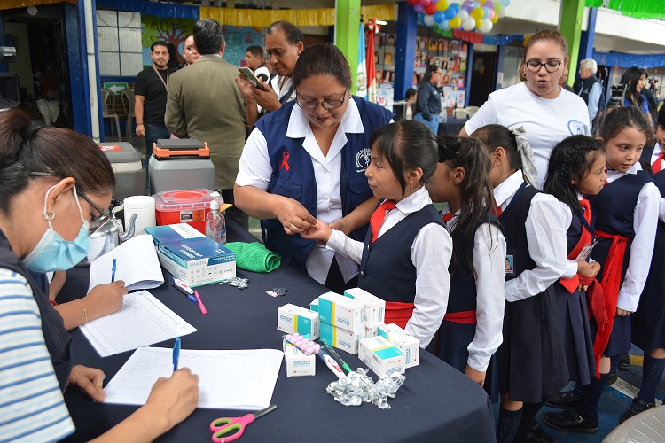 La desparasitación se hace a cada seis meses, está a cargo del personal salubrista de los diferentes servicios de salud a cargo de las 29 Direcciones Departamentales de Redes Integradas de Servicios de Salud (DDRISS) del país, quienes llegan a los establecimientos educativos.