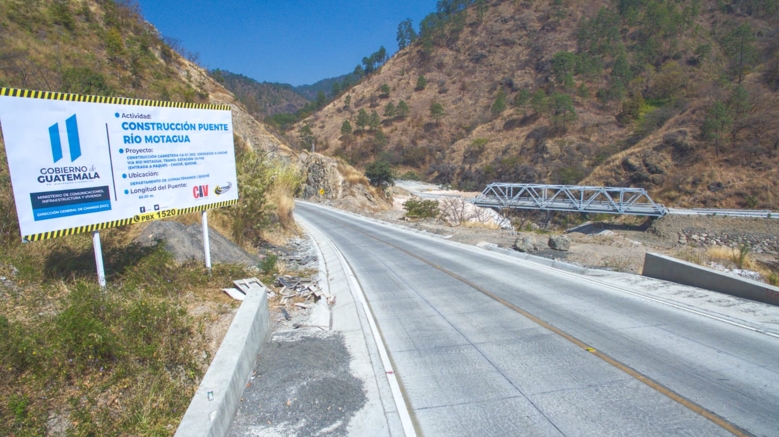 Se trata de la ruta CA-01 OCC, de Tecpán, Chimaltenango a Chiché, Quiché, vía Río Motagua, y consiste en la construcción de 28 kilómetros de carretera revestida con pavimento hidráulico. También incluye la construcción de puentes, obras de protección o mitigación con taludes y manejo de aguas pluviales por medio de cunetas transversales pluviales.