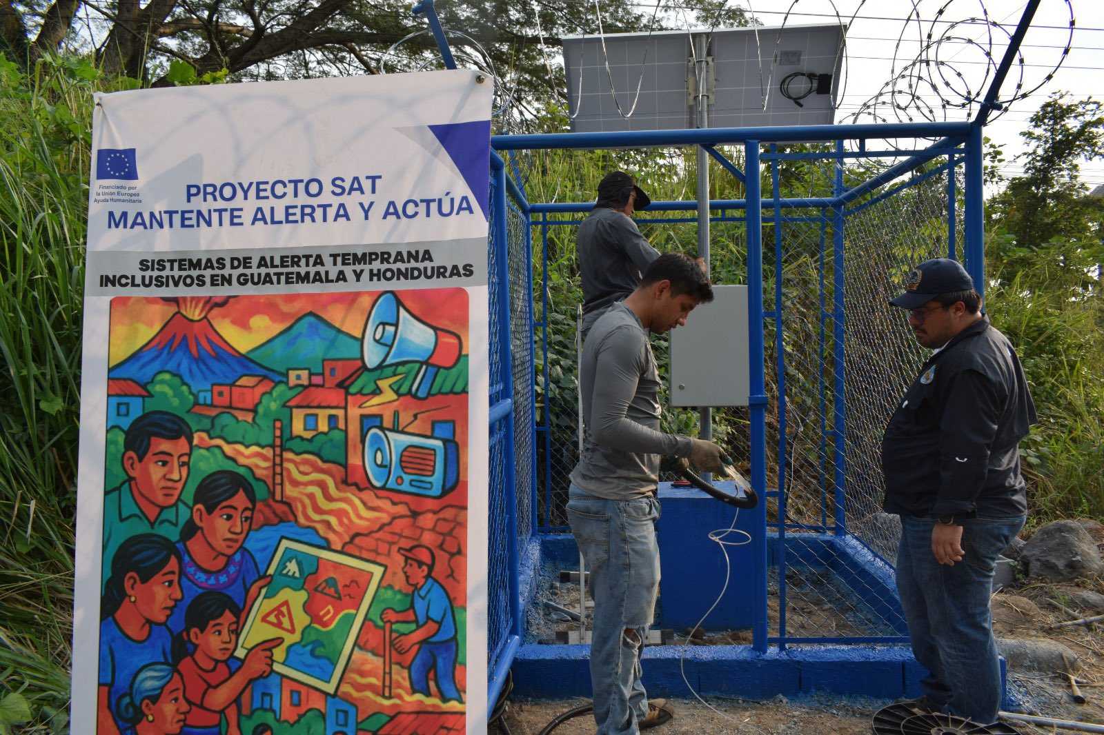El equipo técnico del Instituto Nacional de Sismología, Vulcanología, Meteorología e Hidrología (Insivumeh) instaló una estación hidrológica automática tipo radar en tiempo real en el departamento de Retalhuleu, como parte del proyecto “Mantente Alerta y Actúa: Sistemas de Alerta Temprana Inclusivos en Guatemala y Honduras”.
