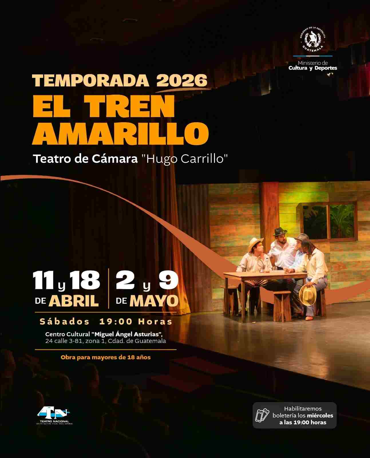 La historia sube al escenario para invitarte a la reflexión con El Tren Amarillo en esta Temporada 2026. Acompáñanos a revivir este clásico del teatro nacional y a disfrutar de esta impactante obra del maestro Manuel Galich.